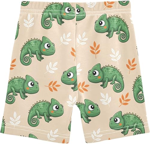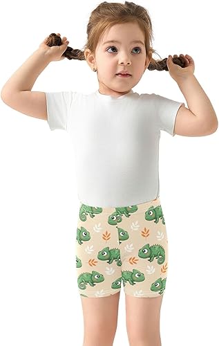 Chameleon Leaves Beige Girls Bike Shorts Toddler Soft Cotton Under Dress Dance Shorts(Multi-chameleon Leaves Beige,8 Years)