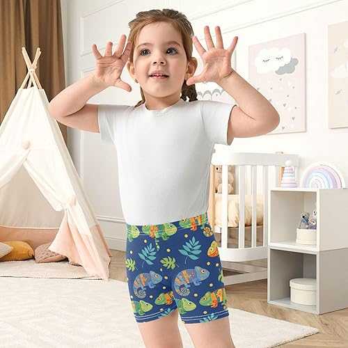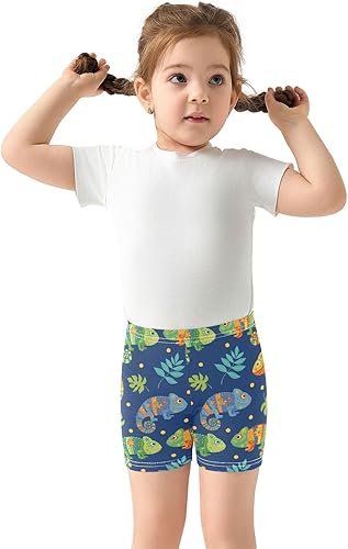 Chameleon Leaves Blue Girls Bike Shorts Toddler Soft Cotton Active Under Dress Shorts(Multi-chameleon Leaves Blue,4T)