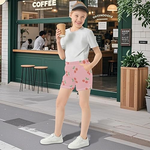 Cherry Leaves Girls Athletic Shorts Summer Girl Shorts Kids Shorts for Girls with Pockets Size 7-15T(Multicolor,12-13 Years)