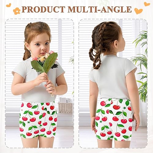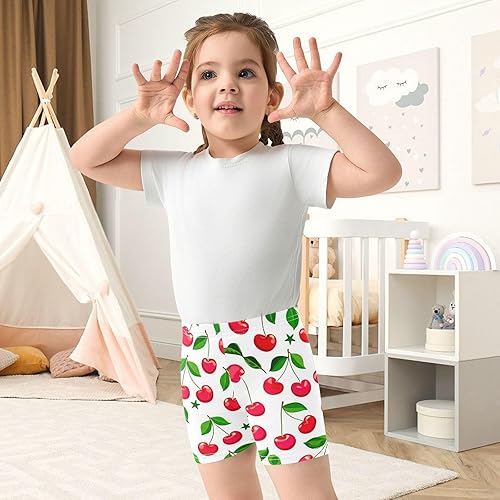 Cherry Leaves White Girls Bike Shorts Toddler Soft Cotton Active Under Dress Shorts(Multi-cherry Leaves White,8 Years)