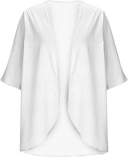 Chiffon Kimono Cardigan for Girls 3/4 Batwing Sleeve Cover Up Oversized Tunic Blouse Teen Kids Beach Cover Up Loose Tops(White,11-12 Years)