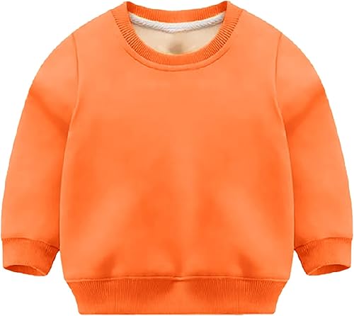 Children Autumn Winter Solid Pullover Tops Long Sleeve O Neck Sweatshirts Hoodies for Girls 12 to 14(Orange,18-24 Months)