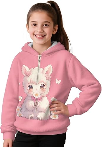 Children's Half Zipper Pullover Collared Neck Pullover Sweatshirt, Breathable Flannel Sweatshirt for Winter Wear(Axolotl Donut,10-11 Years)
