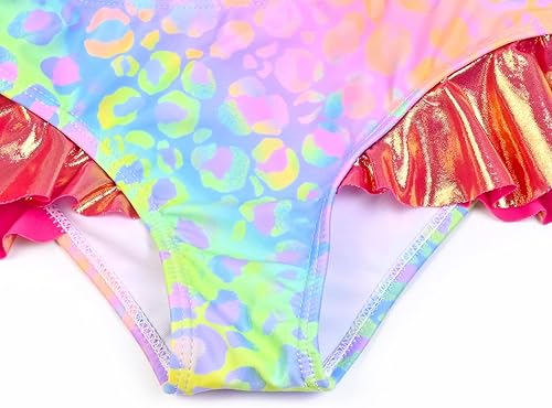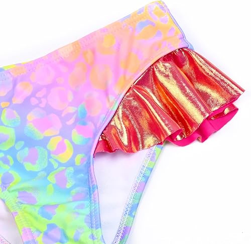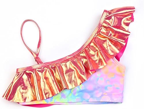Design Features:Metallic ruffled layer decor bikini set makes your girls be a shinny star;adjustable strap for easy wear,flutter bottom brings more cute on this set