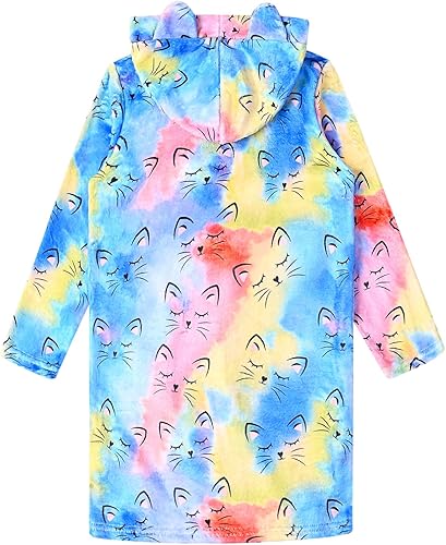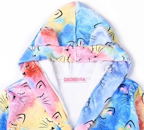 Soft plush bathrobes for girls, long sleeve, cute cat ears on the hood, belts sewing both sides design