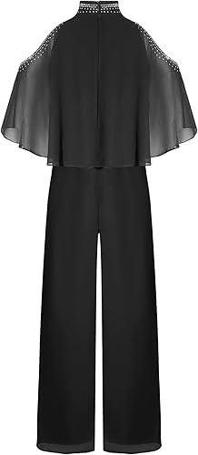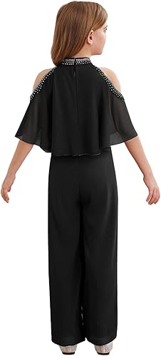 Choomomo Girls Sparkly Dressy Jumpsuits Mock Neck Cold Shoulder Formal Dance Romper Trendy Prom Outfits(Black,14 Years)
