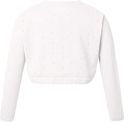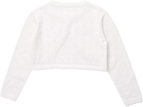 Kids Girls Long Sleeve Bowknot Knitted Hollow Out Rhombus Pattern Single Button Closure Crochet Cardigan
