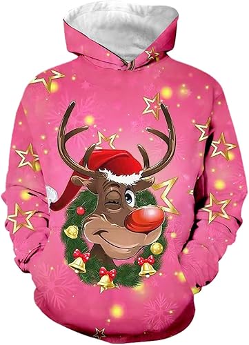 • FESTIVE HOLIDAY DESIGN: This boys' Christmas hoodie features cheerful holiday prints with seasonal patterns like reindeer and snowflakes.The highlight is all kinds of cool and novel 3D printing.The playful design adds festive spirit to children's winter wear, perfect for Christmas celebrations and family gatherings.
