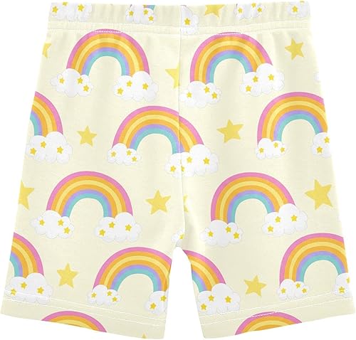 Cloud Star Yellow Girls Bike Shorts Toddler Soft Cotton Cartwheel Under Dress Dance Shorts(Multi-cloud Star Yellow,4T)