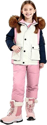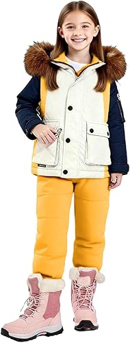 Upgraded Warmth: This children's ski suit features an ultra-warm oversized fur collar, a detachable hood, and a double-breasted, extended windproof collar. These layers lock in warmth. Double-layered fleece insulation provides comprehensive protection against the cold, ensuring your child stays warm and comfortable in the snow. snow pants kids