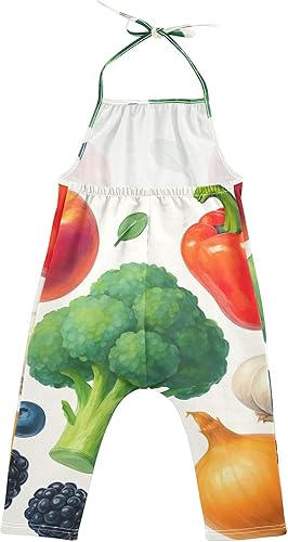 Colorful Fruits Vegetables Baby Jumpsuit for Girls Toddler Rompers Day Care Kids One Piece Summer Clothes Babies(1T)