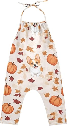 Corgi Pumpkin Toddler Girl Clothes Sleeveless Romper Jumpsuit for Girls Summer One Piece Romper Pants Size 1-6T(Multicolor,2T)