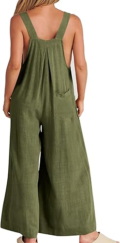 Cotton Lined Bib Overalls for Girls Summer Jumpsuits Boho Wide Leg Pants Casual Solid Rompers Beach Outfits with 1(Ag,11-12 Years)