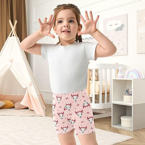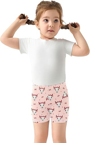 Cow Bone Pink Girls Bike Shorts Toddler Soft Cotton Cartwheel Under Dress Dance Shorts(Multi-cow Bone Pink,4T)
