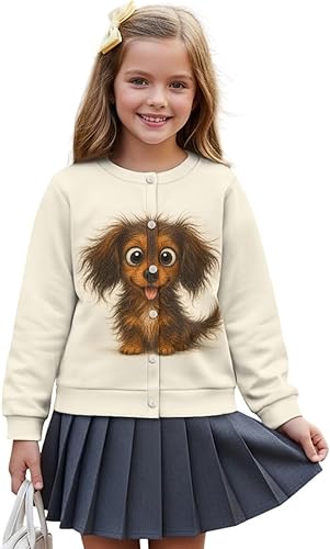 Cozy Cardigan for Girls Crewneck Sweatshirt Button Down Knitwears Warm Streetwears Chic Playwears(Cat Yellow,11-12 Years)