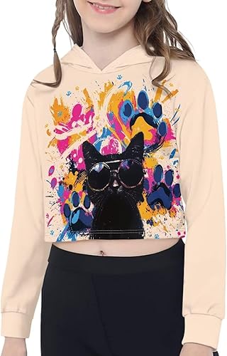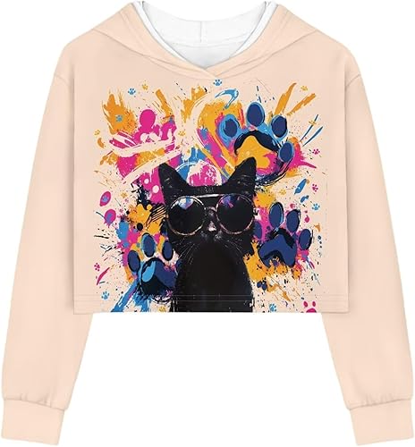 【Girls' Fashion Features】This patterned hoodie has a loose fit for easy movement. The hooded short fashion design shows a smart and lively temperament. Wear it with jeans, casual pants, sneakers and simple accessories to make you look more fashionable and individual