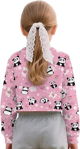 Cropped Sweatshirts for Girls Longsleeve T-Shirts Casual Soft Sleepover Casual Top for Autumn 5-14 Years Teen Girl(Strawberry Panda,11-12 Years)
