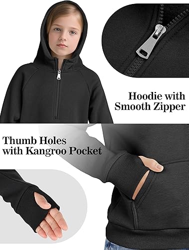 Smart Design for Active Lifestyles: The thumbhole sleeves keep hands covered during outdoor play, while the half-zip neck lets girls adjust for ventilation; an oversized fit, raglan sleeves, and kangaroo pocket add street-style flair; mid-length cut covers hips when bending