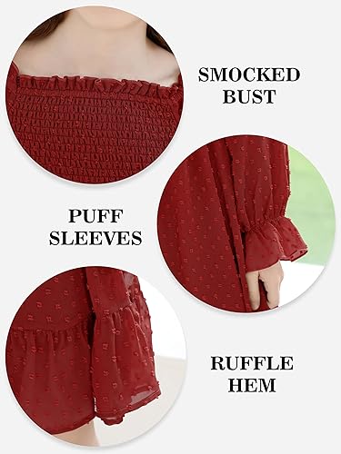 Two Styles in One: Let her choose between a classic square or off-shoulder neckline, with cute puff sleeves and a ruffle hem; The elastic waist and A-line shape make it comfy for twirling, and the above-knee lining keeps her covered
