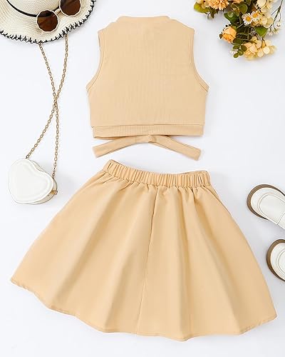 Girls Fashion Clothes Design: This crop top for girls skirt set features stretchy ribbed crisscross tank top,wide waist pleated skirts. Preppy clothes design,presenting your kids energetic and cute appreance.