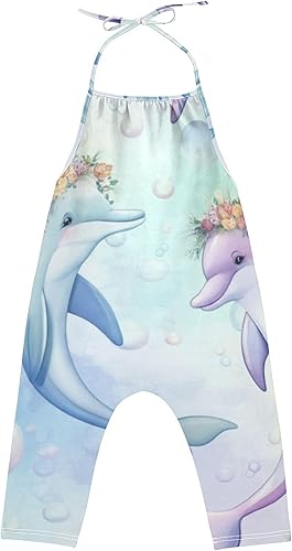 EASY STYLE: The cute ruffled neckline and practical pockets make this babies halter neck romper for toddlers a standout for its playful design and convenience
