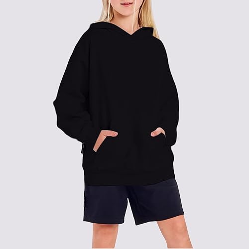 Cute Hoodies for Teen Girls Trendy Preppy Hooded Sweatshirts Oversized Long Sleeve Shirts Plain for Girl Fall Clothes Ouftit(Black,7-8 Years)