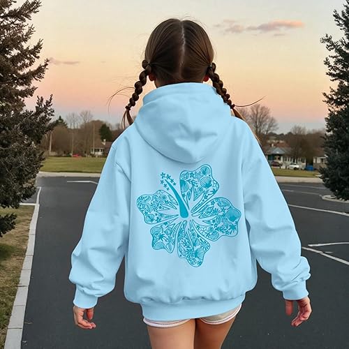 Features: The back of this preppy hawaiian beachy hoodies are printed with various ocean elements to form a cute aesthetic hibiscus flower. pink floral graphic print, trandy sweatshirt for teen girls, making attractive in the crowd