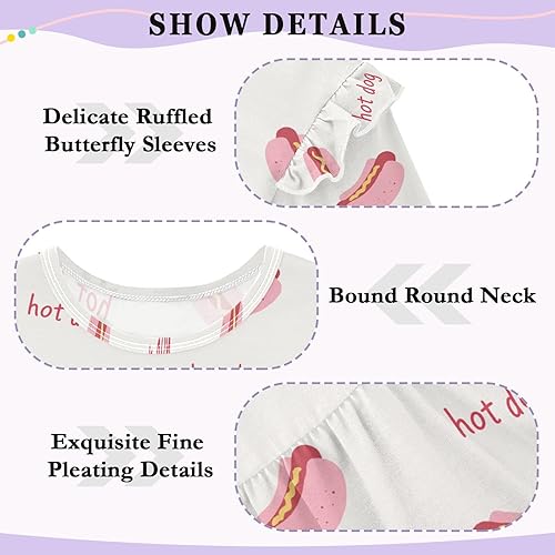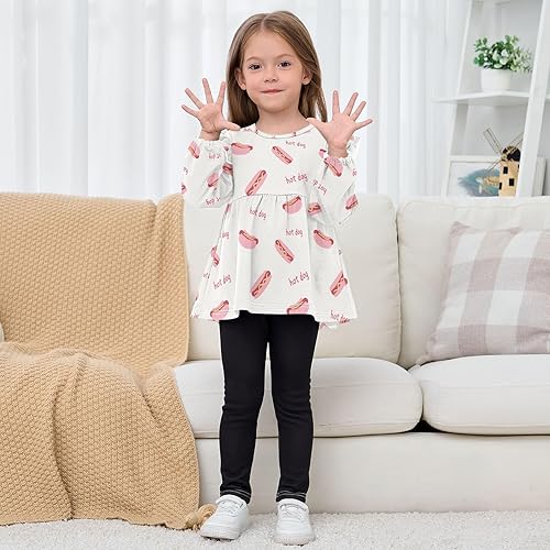 Cute Pink Hot Dog Girls' and Toddler Ruffle Long Sleeve Shirt Girls Cotton Tee Tops 18M-5T(3T)