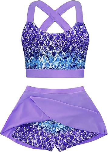 Unique 3D Printed : All over print for girls swimsuit,like mermaid, alania floral, leopard,palm tree, tie dye and so on.Fits for 6-13 years girls