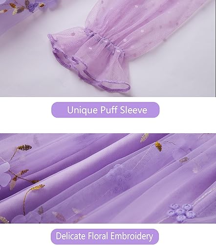Feature: Mesh tulle high low dress with trendy mesh puff long sleeve makes your sweet princess girl the most graceful and shining in the crowd. Contrast mesh sweetheart neckline, adding to how classy it is, high low hem and full-length floral embroidery decor to make it fit for many special occasions