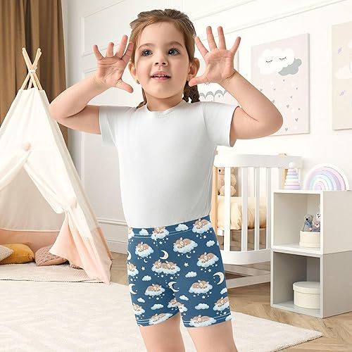 Deer Cloud Blue Girls Bike Shorts Toddler Soft Cotton Under Dress Cartwheel Shorts(Multi-deer Cloud Blue,4T)