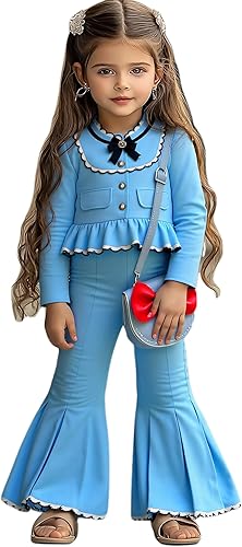 Stylish and comfortable girls' fashion sets for summer, featuring trendy flare pants and matching shirts in sizes 2T, 3T, 4T, 5T, 6Tand 8T.