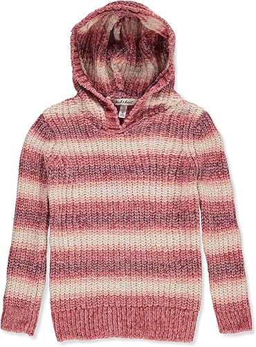 Derek Heart Girls' Chenille Striped Hooded Sweater - Dusty Rose, 6