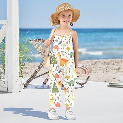 Dino and Tree Toddler Girl Clothes Sleeveless Romper Jumpsuit for Girls Summer One Piece Romper Pants Size 1-6T(Multicolor,1T)