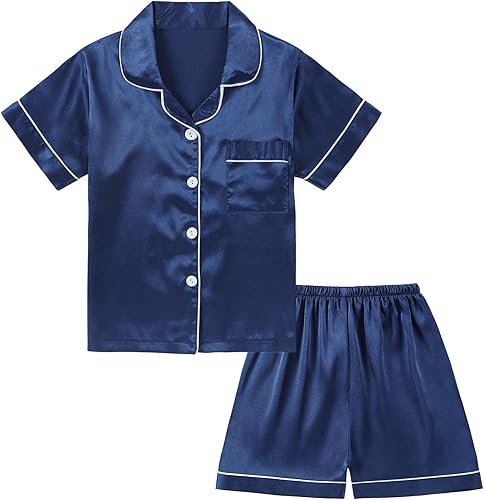 Two-Piece Pajama Set: DIPUG's girls pajamas come with a short-sleeve top and matching shorts. The top boasts a timeless lapel style with a handy chest pocket, while the shorts feature an elastic waist for easy on and off.