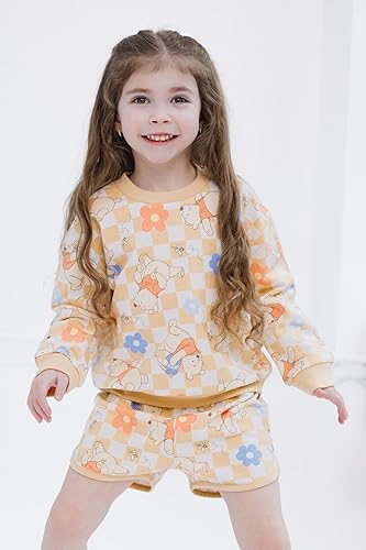 Officially licensed Disney Minnie Mouse little girls long sleeve graphic sweatshirt and shorts