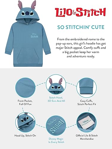 Official Disney Merchandise: Featuring “Disney Stitch” embroidered on the front, this long hoodie is an adorable piece of Stitch merchandise that brings magic to your child’s Disney hoodies