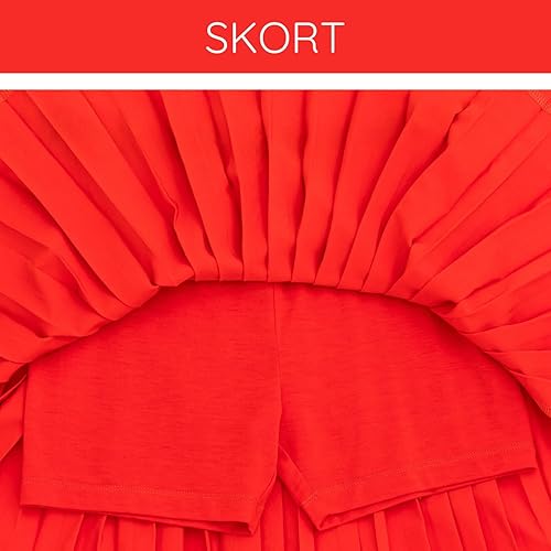Rib knit crew neck collar; Awesome screen print design; Stylish drop shoulder sleeves; Cute pleated skirt with inner shorts; Elastic waist for comfortable stretch and a better fit; Pull on closure; Boxy fit