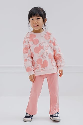 Disney Minnie Mouse Mickey Mouse Fleece Sweatshirt & Flare Leggings Outfit Set Infant to Big Kid Sizes (18 Months - 10-12)(Pink,7-8)