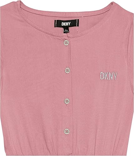 DKNY Girls Classic Comfy Short Sleeve Jumpsuit Romper, Wild Rose, 6X US
