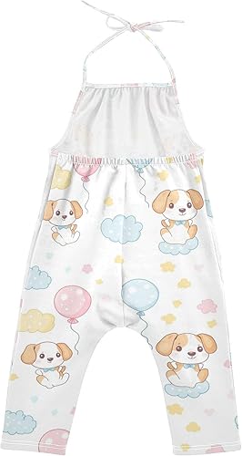 Dog Balloon Toddler Girl Clothes Sleeveless Romper Jumpsuit for Girls Summer One Piece Romper Pants Size 1-6T(Multicolor,4T)