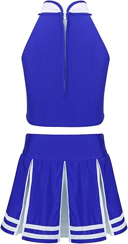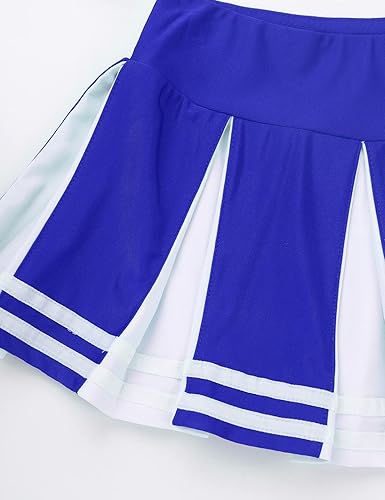 Matching wide elastic waistband skirt with knife pleated design. Beautiful cheerleading costume for your girl