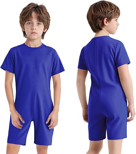 dPois Special Needs Adaptive Clothing for Kids Girls Boys Autism Sensory Jumpsuit Anti-Strip Romper with Back Zipper(Royal Blue,10 Years)