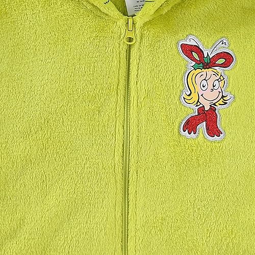 Officially Licensed Dr. Seuss Grinch Girls Coral Fleece Zip Up Hoodie, the best girls hooded sweatshirt for toddler and big kids who love of the classic Christmas story, Grinch Who Stole Christmas.