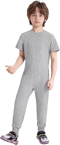 easyforever Kids Boys Girls Short Sleeve Anti-Strip Jumpsuit Romper Adaptive Clothing with Back Zipper for Special Needs Grey 12 Years