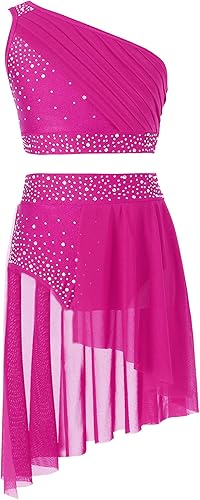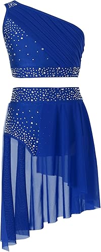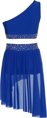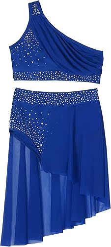 Kids girls' lyrical dance performance outfit with rhinestones that sparkle under the light to brighten up any performance
