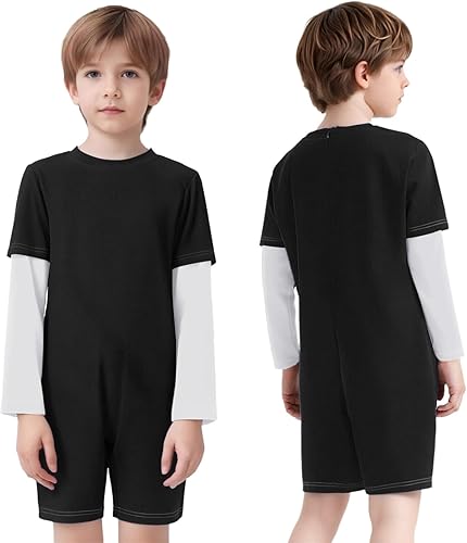 easyforever Special Needs Adaptive Clothing for Kids Girls Boys Long Sleeve Jumpsuit Easy Dressing Anti-Strip Romper Black White 16 Years
