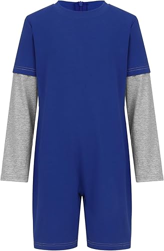 easyforever Special Needs Adaptive Clothing for Kids Girls Boys Long Sleeve Jumpsuit Easy Dressing Anti-Strip Romper Blue Gray 14 Years