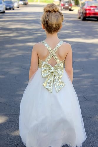 The elegant bodice feature is made of sparkling sequins with Crossed Straps back. The back of the dress has a zipper closure and also decorated with a removable sequins mesh bow to make this dress more elegant.