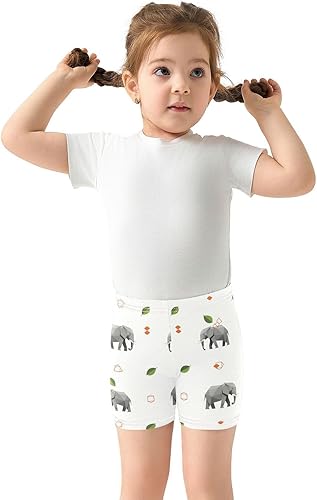 Elephant Leaf White Girls Bike Shorts Toddler Soft Cotton Under Dress Dance Shorts(Multi-elephant Leaf White,4T)